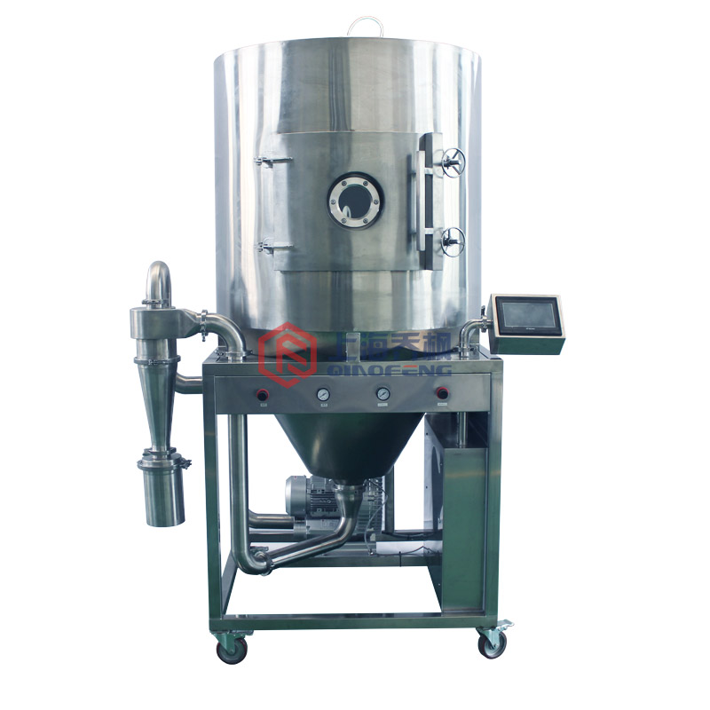 造粒噴霧干燥機是上海喬楓自主研發的一套造粒噴霧干燥機的。QFN-ZL系列造粒噴霧干燥機(喬楓**)專門的雙氣送液造粒噴頭,國內一大創新,直接將均勻的球形霧滴通過均勻的熱量變成顆粒。